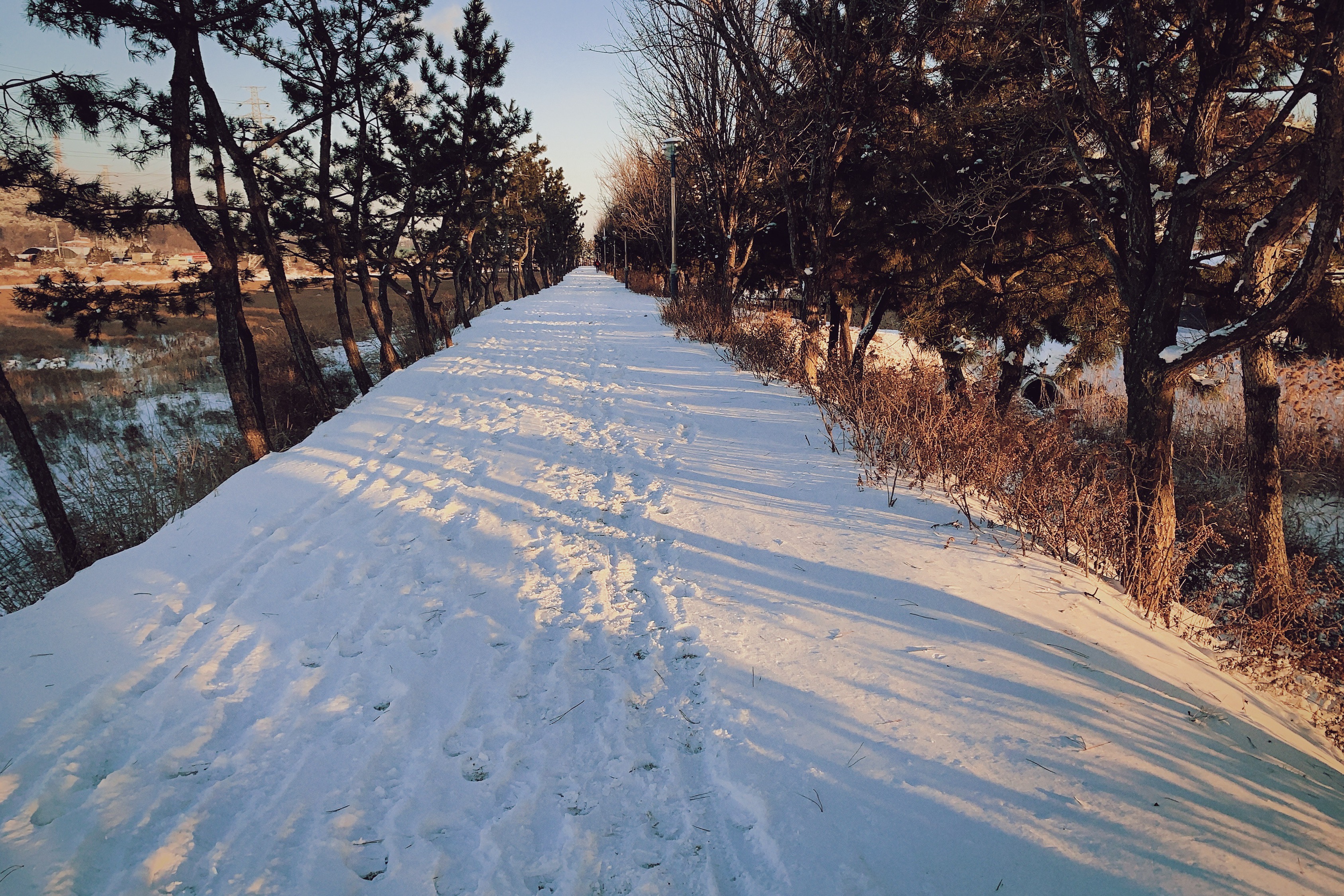 사람도 없고 새벽 아침 아무도 밟지 않은 쌓인 눈을 처음으로 내 발자국을 남길 수 있다.