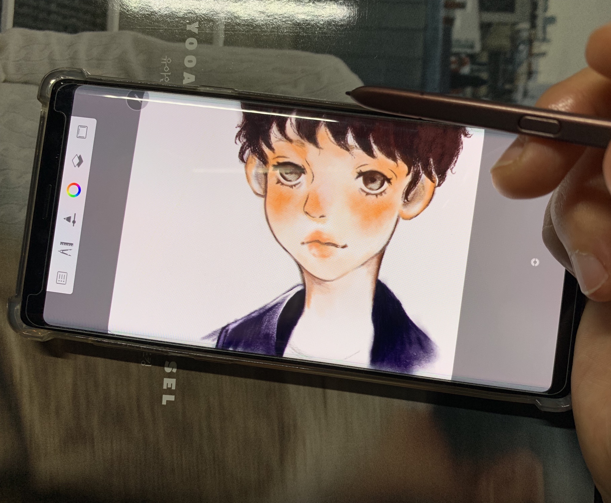 잠시 휴식할 겸 나는 엄마 핸드폰으로 그림을 그리고 있다.