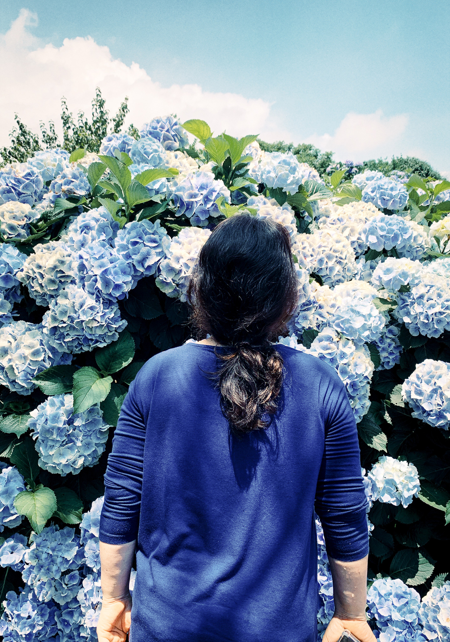 얼마 안 남아있는 그나마 뭉텅이로 피어있는 곳을 찾아 걷다 찾은 곳 수국 꽃 사이로 들어가 사진도 많이 남기고 엄마가 찍어준다고 하는 것을 괜찮다 말하고 엄청 많이 찍었다.